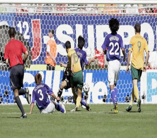 ▲2006年世界杯,约翰·阿洛伊西(15号)攻破日本队球门图据视觉中国