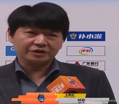 山东主帅邱彪和球员代表高诗岩接受媒体采访。
